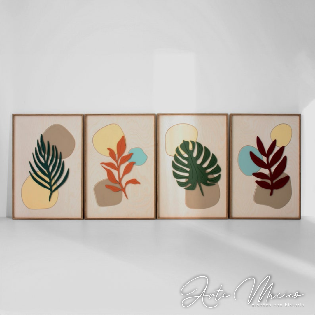 Precioso set de 4 cuadros al.estilo Boho, cada uno mide 60x40cm. Estan elaborados en Madera MDF de 6mm de espesor.