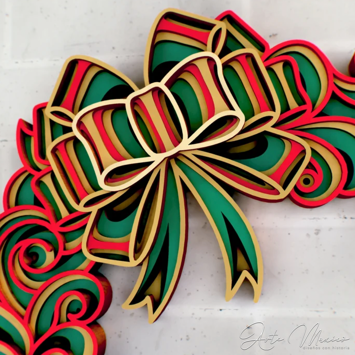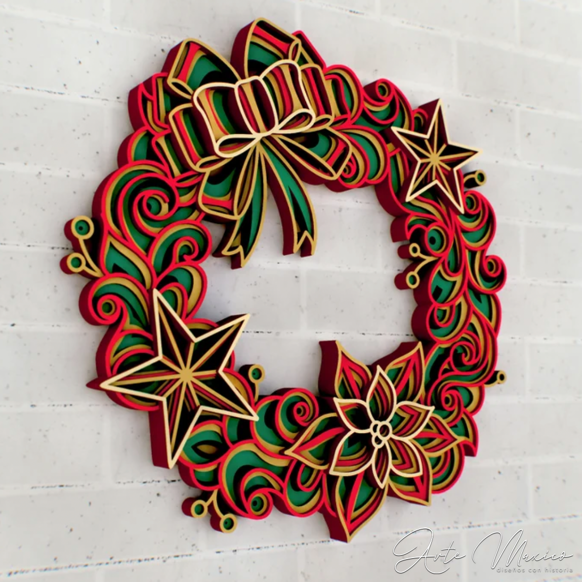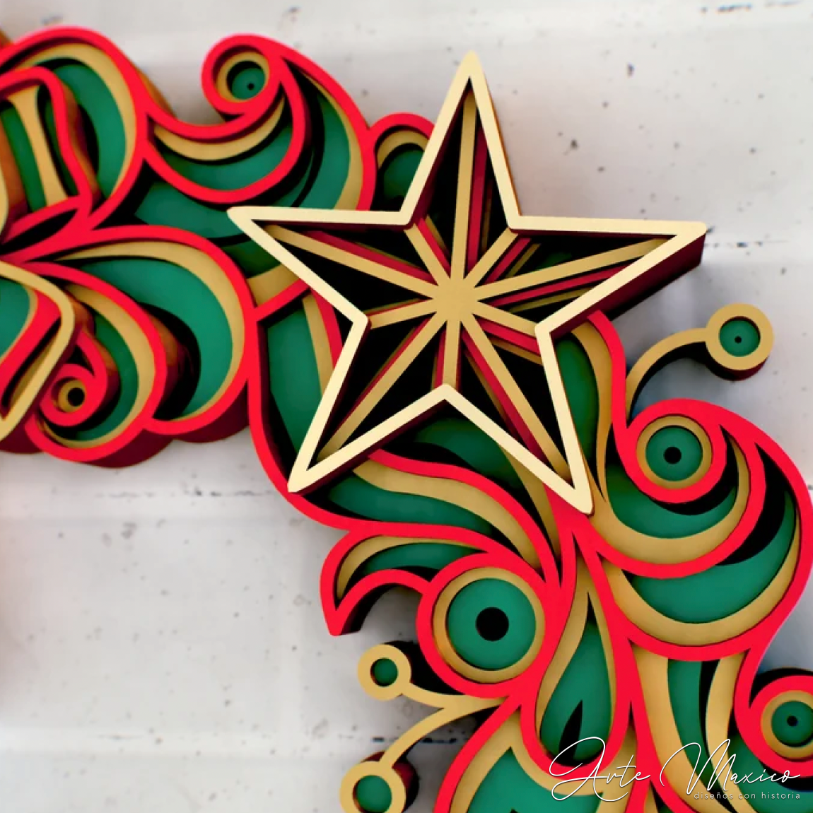 Pieza con diseño único y gran detallado, estos diseños están llenos de tradición, familia y amor, para esta temporada tan especial, deja que Arte Maxico entre a tu hogar, con este increíble diseño de una Corona Navideña multicapas 3D. Creemos que las tradiciones no deben de perderse pero sí podemos dar paso a lo moderno sin olvidar las raíces. Y ahí es donde nosotros entramos, porque las tradiciones, jamas se deben de olvidar ¡Qué pasen una Navidad Mágica!