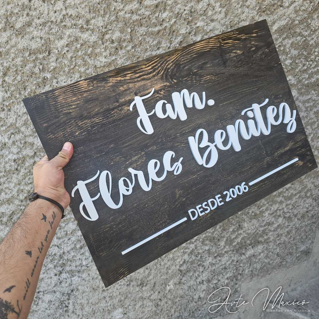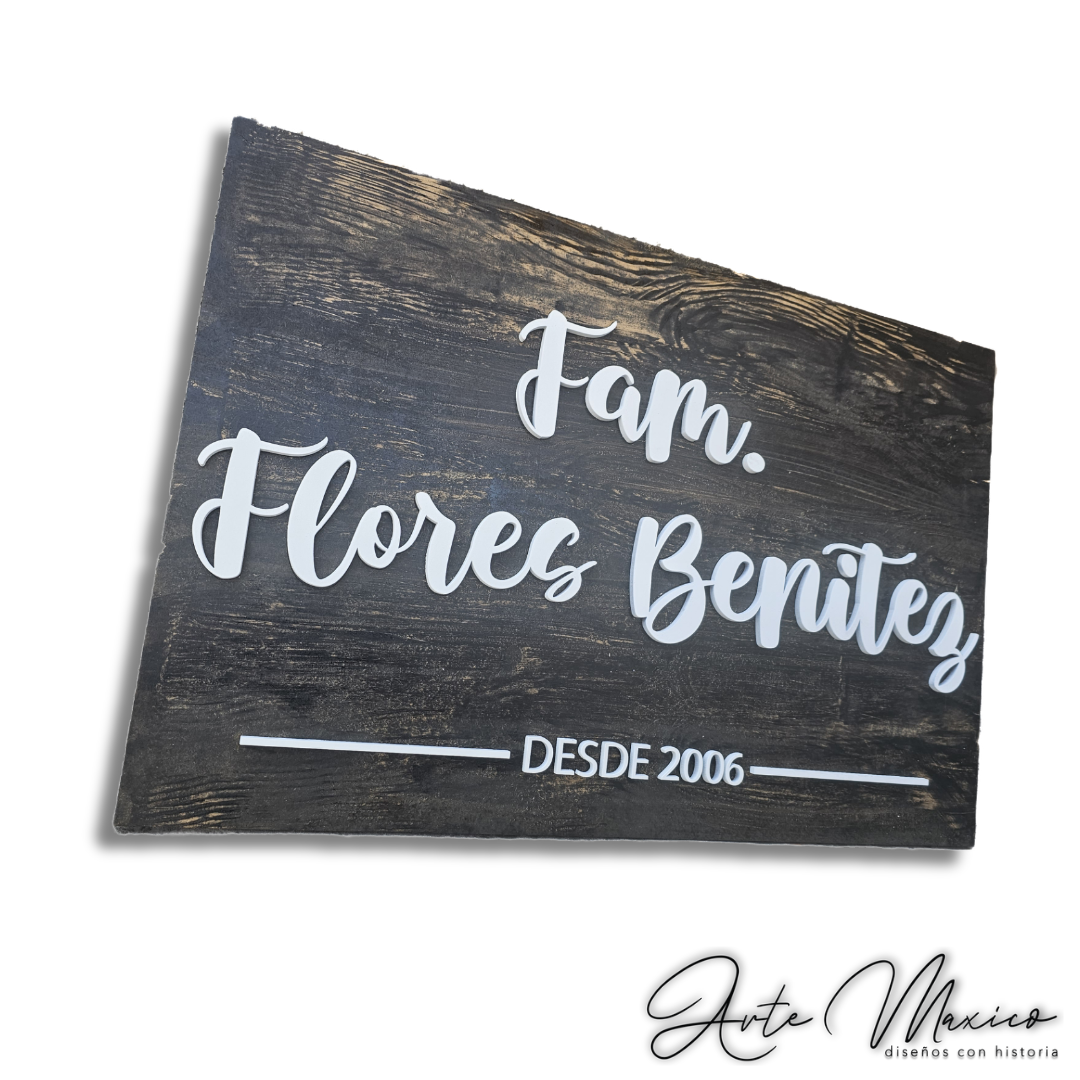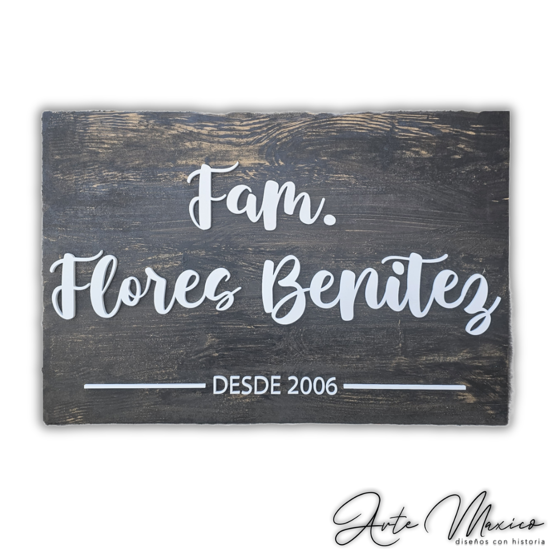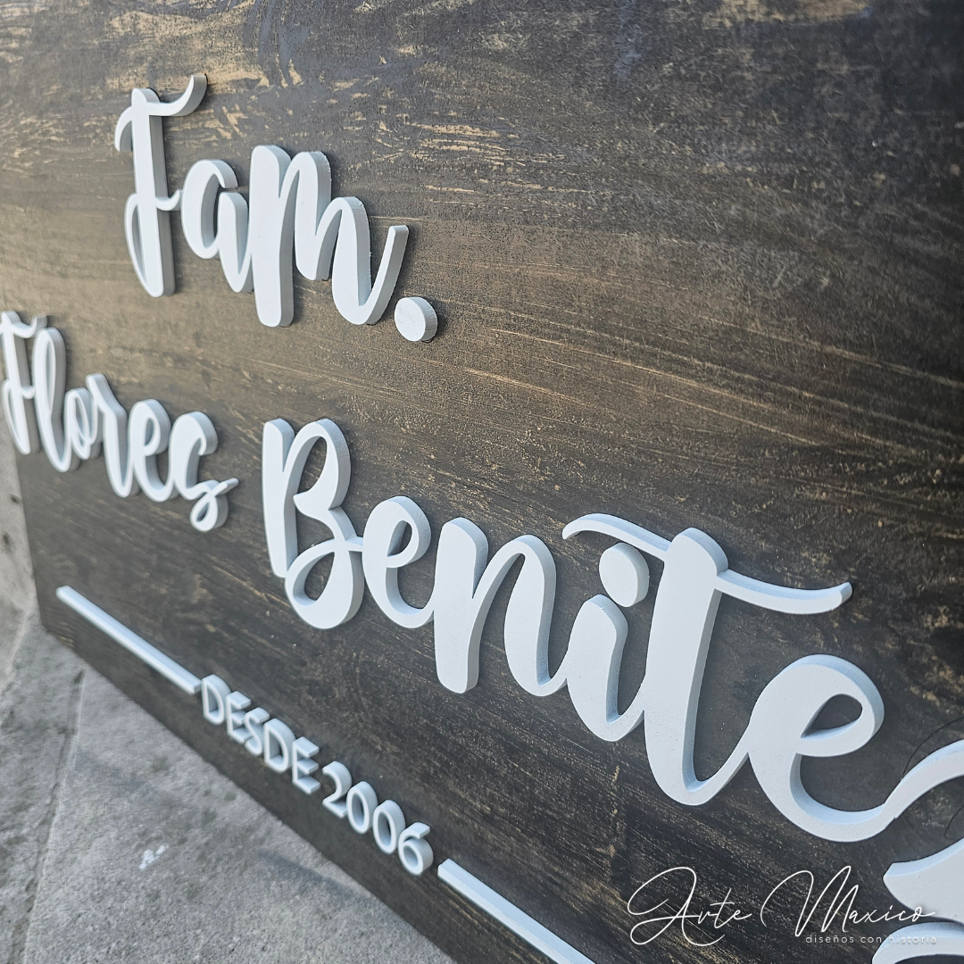 Diseño lleno de elegancia y con gran impacto visual, se trata de una placa Familiar en la cual se muestra un efecto 3D en las letras, esta elaborada en madera MDF de Importación con corte laser y puedes personalizar colores, fecha y palabras.
