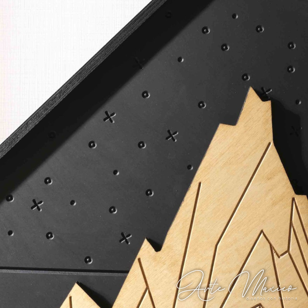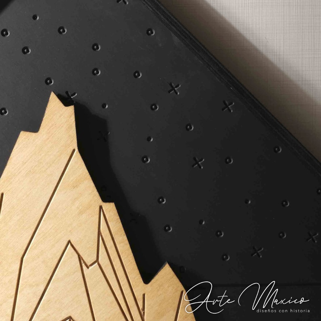 · La pieza está disponible en 50x 50cm, con una base de 6mm y relieve de 3mm. El material que ocupamos en todos ellos, es madera reciclada de importación convertida en MDF para disminuir el impacto ambiental, esta, es trabajada con técnica de corte láser y nuestros artesanos hacen los detalles y el pintado a mano para así ofrecer una pieza única y artesanal.