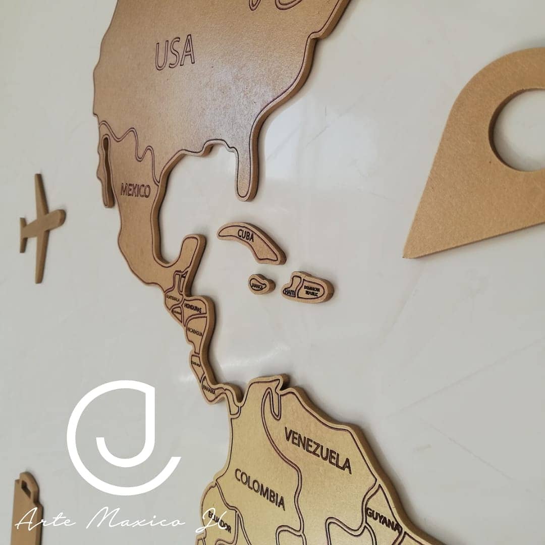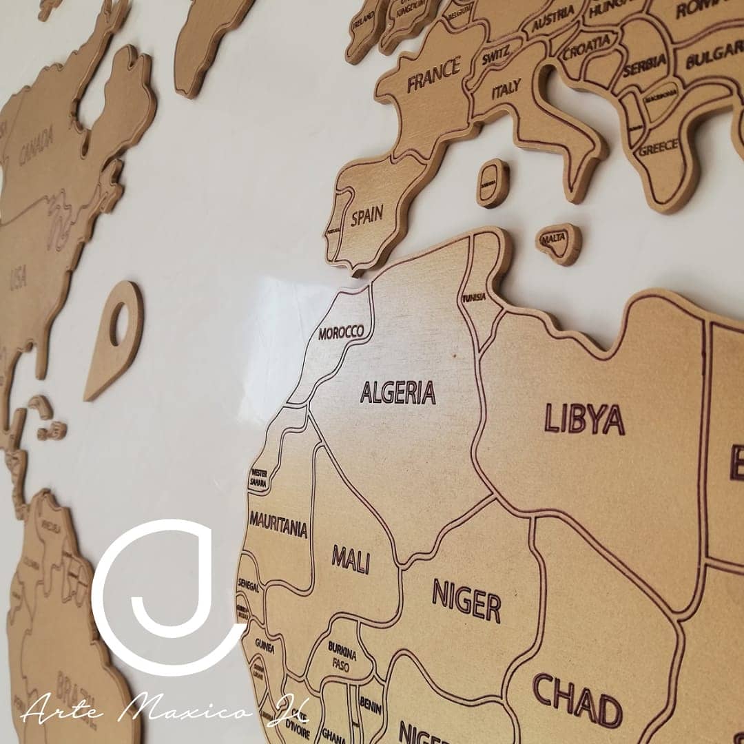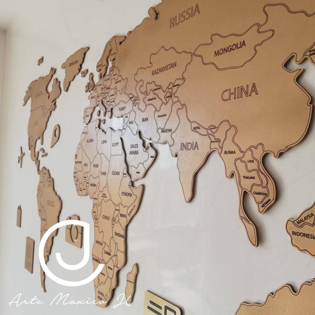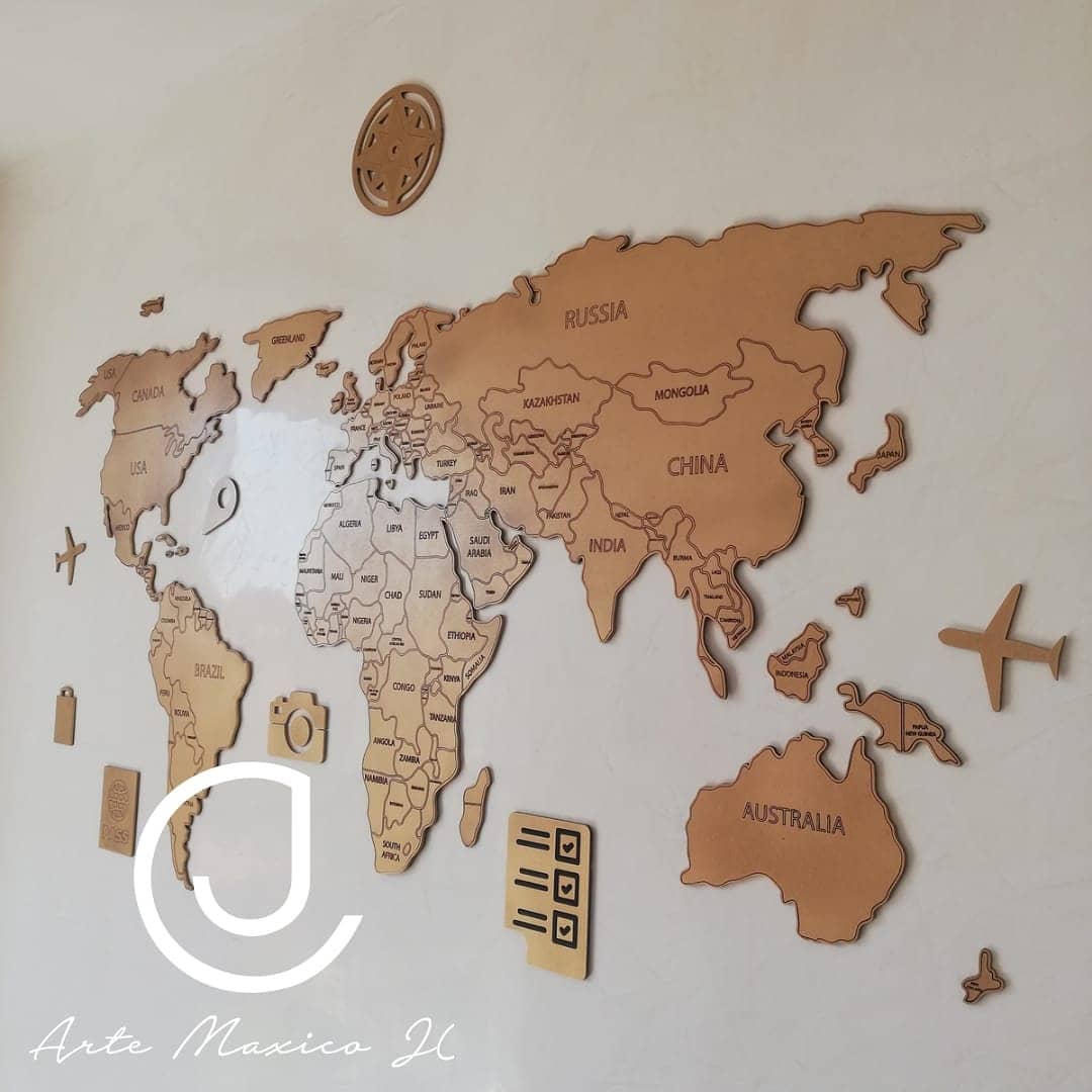 Si lo que buscas es un mapa detallado y de excelente calidad, esta es la mejor opción, esta elaborado en madera MDF de Importación con corte laser y pintado en color Dorado. Disponible en 1.20m, 1,50 y 1.80, incluye todos los elementos de viaje.