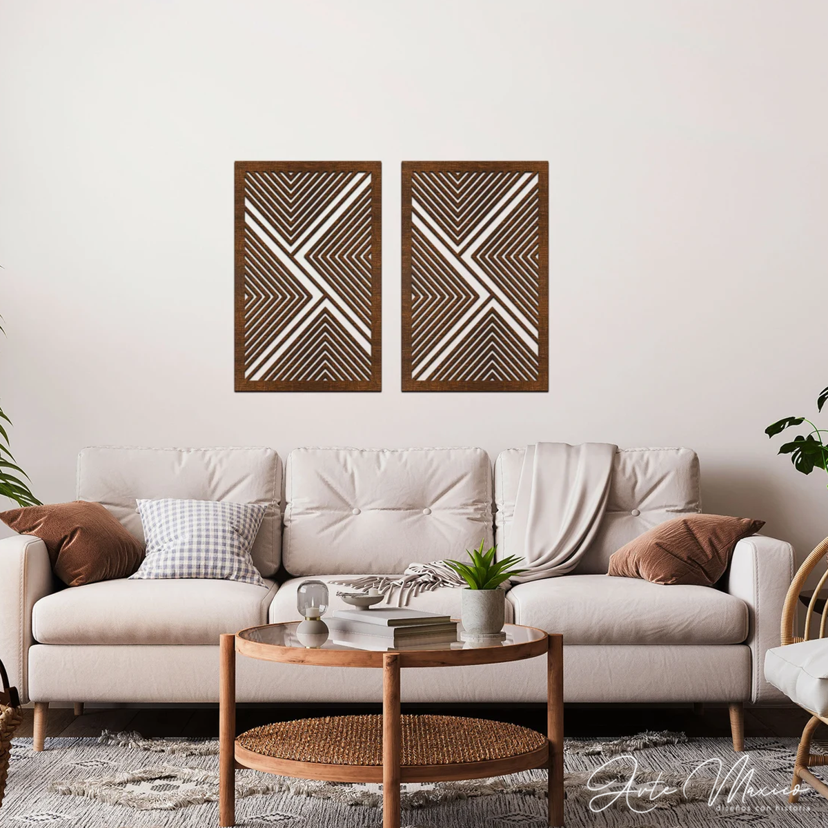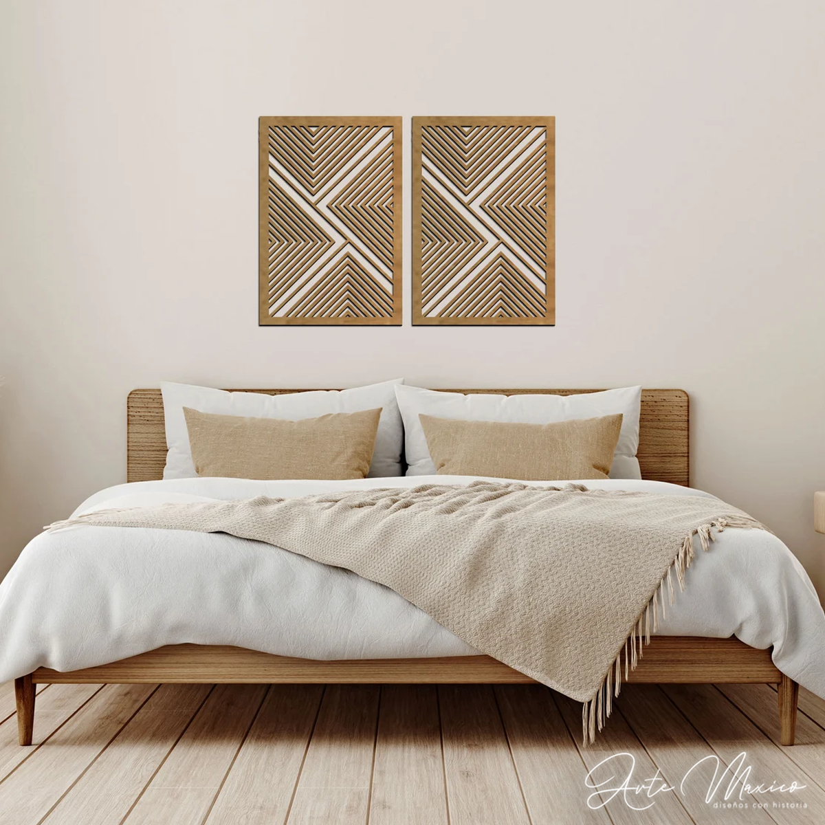 · Disponible en 2 piezas y cada una de ellas mide: 75 cm x 55 cm. El material que ocupamos es madera reciclada convertida en MDF para disminuir el impacto ambiental, esta es trabajada con técnica de corte láser, y nuestros artesanos realizan todos los detalles, pintado y el armado a mano para así ofrecer una pieza, con tonos vivos, única y artesanal.
