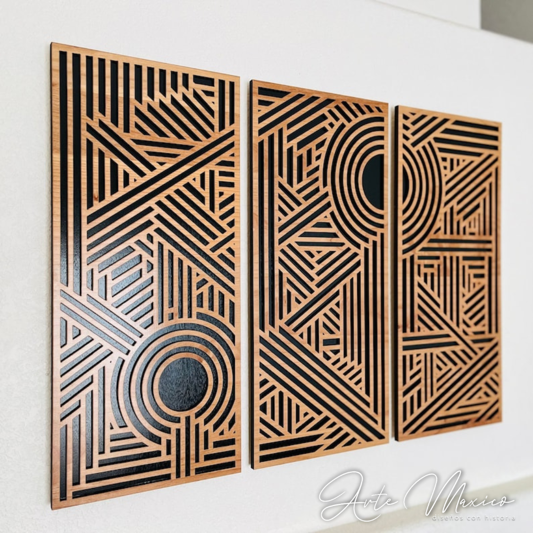 Precioso set de 3 cuadros a doble relieve, cada uno mide 75x33cm. Estan elaborados en 2 capas de Madera MDF de 6mm de espesor de Importación con corte laser. Recuerda que al hacer tu compra puedes dejar una nota donde menciones el color en el que deseas tu pedido.