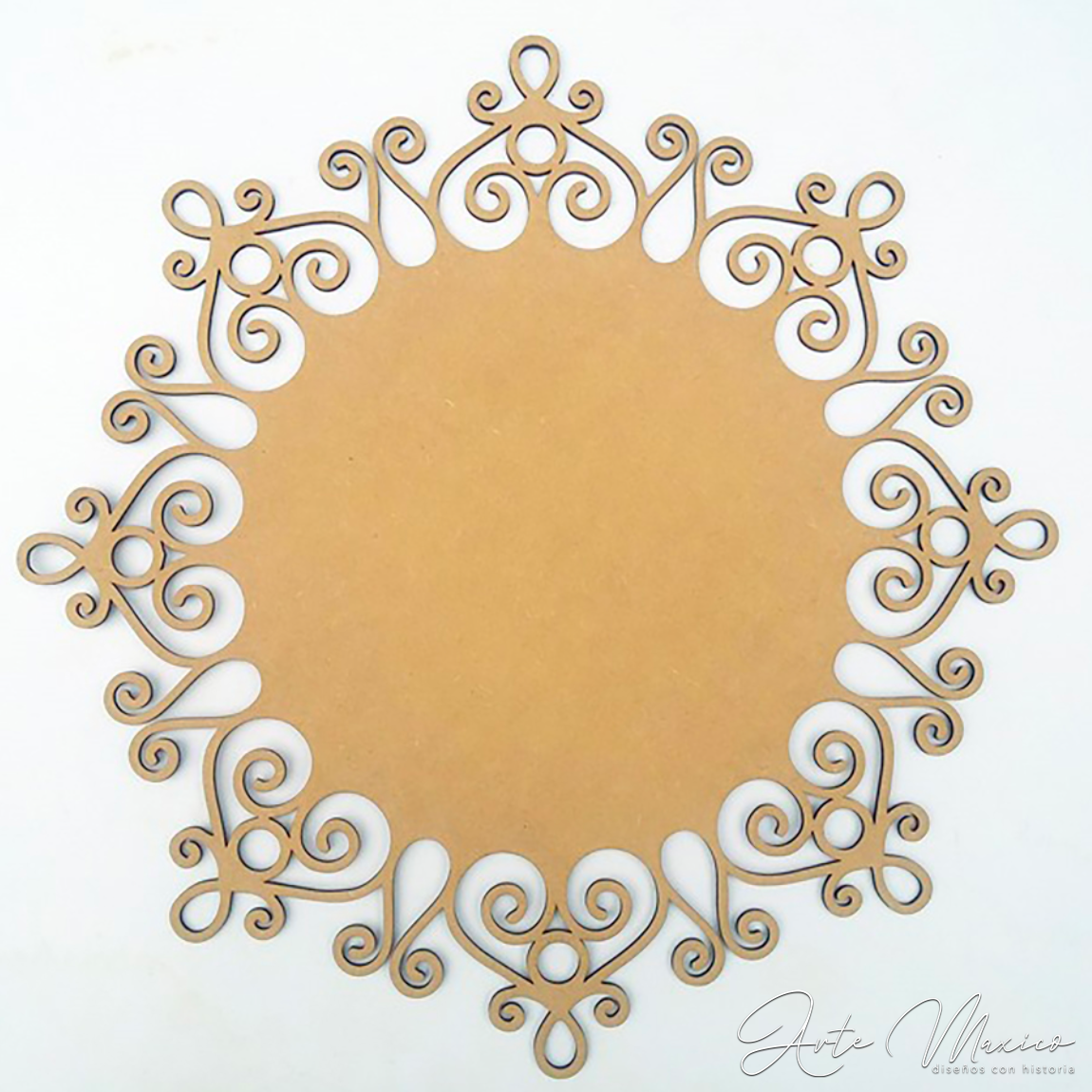 · La pieza está elaborada con un espesor de 3mm. disponible en 30cm diámetro. El material que ocupamos es madera reciclada convertida en MDF para disminuir el impacto ambiental, esta es trabajada con técnica de corte láser, y nuestros artesanos realizan todo el detallado, acabados y el pintado a mano para así ofrecer una pieza única y artesanal. Estas piezas están disponles en el color de tu elección.